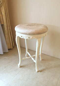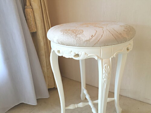 輸入家具 オーダー家具 カウンタースツール ビバリーヒルズの彫刻 ホワイト色 ピンク花かご柄