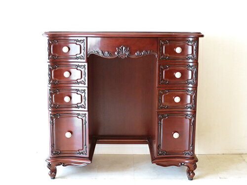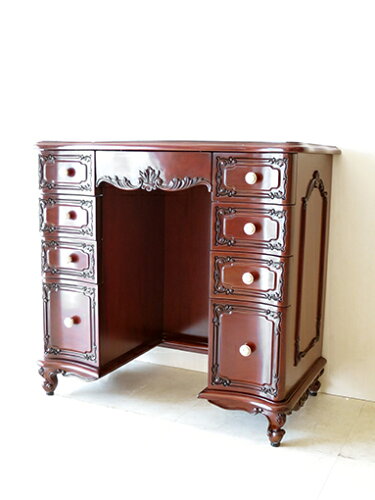輸入家具 オーダー家具 プリンセス家具 ドレッシングテーブル W80cm 引出し7杯 ビバリーヒルズの彫刻 側面モールディング マホガニー色 ブラックアンティーク仕上げ スツール付き ベージュベルベットの張地