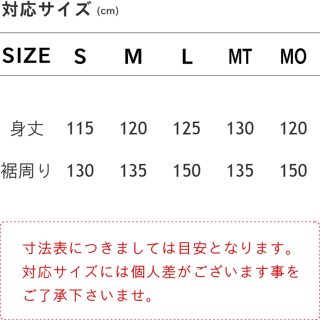 ▼商品の詳細 サイズS/M/L/MT/MO(身丈115-130cm 裾周り130-150cm) 素材絹100%(ハイパーガード加工済)