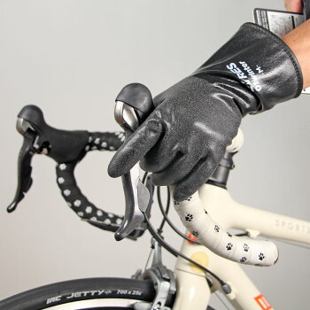 全面、樹脂コーティングによる「防水加工」:指先まで全面、ポリウレタンをコーティングすることで、水の浸入を防ぎます。